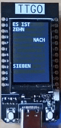 Es gibt viele Umsetzungen, und jetzt habe ich eine für das TTGO-Display gemacht. Die Zeit wird von einem Timeserver geholt. Dazu verbindet sich der ESP beim starten kurz mit meinem WLAN. Vom JavaScript Code habe ich die Ziffern und die Verschmelzung der Ziffern übernommen. Alles andere musste selber programmiert werden.